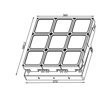 燈體 防護(hù)等級(jí):IP65 燈體材料:專(zhuān)利梳狀對(duì)流散熱設(shè)計(jì)、低熱阻路徑散熱設(shè)計(jì)、獨(dú)特防水透氣設(shè)計(jì) 戶(hù)外防雷及靜電(ESD)專(zhuān)用防護(hù)設(shè)計(jì)巧妙的防眩光處理設(shè)計(jì)! 玻璃材料:絲印孔位鋼化玻璃 供電電壓:DC24V/AC220V 光源 類(lèi)別:OSRAM 數(shù)量:144PCS 功率:18W*9 單顆LED功率:1W 色溫: 3000K+/-100K(可選) 平均壽命:≥20,000Hrs 顯色指數(shù):Ra>80 R9>0 SDCM: <5 電器 功率因數(shù):≥0.90(加電容補(bǔ)償) 安裝位置:燈具外 控制方式:恒流控制 電源線:2*1mm2電纜線+特質(zhì)抗UV防風(fēng)化,出線長(zhǎng)度外露20cm 安全電氣等級(jí):III類(lèi)/I類(lèi) 發(fā)光角度:45°(可選) PCB板材:1.6MM+35UM銅箔+ 2.0熱導(dǎo) 外觀尺寸 燈具尺寸:360*385*372mm 應(yīng)用場(chǎng)所 建筑、公園、橋梁等 |